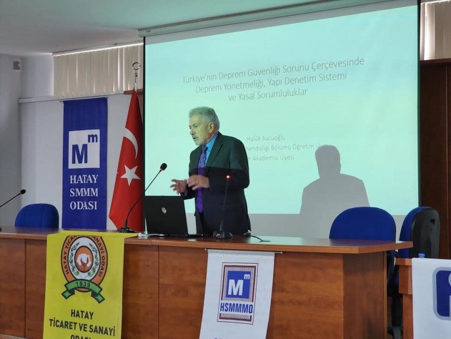 Odamız ile TMMOB İnşaat Mühendisleri Odası Hatay Şubesi iş birliğinde; Orta Doğu Teknik Üniversitesi’nden Prof. Dr. Haluk Sucuoğlu ve Türkiye Deprem Mühendisliği Derneği Kurucu Başkanı, ODTÜ’den emekli Polat Gülkan sunumlarıyla, “Türkiye’nin Deprem Güvenliği Sorunu Çerçevesinde Deprem Yönetmeliği, Yapı Denetim Sistemi ve Yasal Sorumluluklar” konulu panel başarıyla gerçekleştirildi. Panele; Meclis Üyemiz Cemil Gündüz, Genel Sekreter Yardımcımız Serkan Altunkaya, TMMOB İnşaat Mühendisleri Odası Hatay Şube Başkanı İnal Büyükaşılik, TMMOB Mimarlar Odası Hatay Şube Başkanı Mustafa Özçelik, İnşaat Mühendisleri Odası üyeleri ve Odamız üyeleri katılım sağladı.