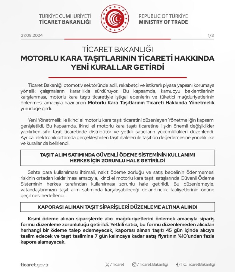 https://ticaret.gov.tr/haberler/ticaret-bakanligi-motorlu-kara-tasitlarinin-ticareti-hakkinda-yeni-kurallar-getirdi
