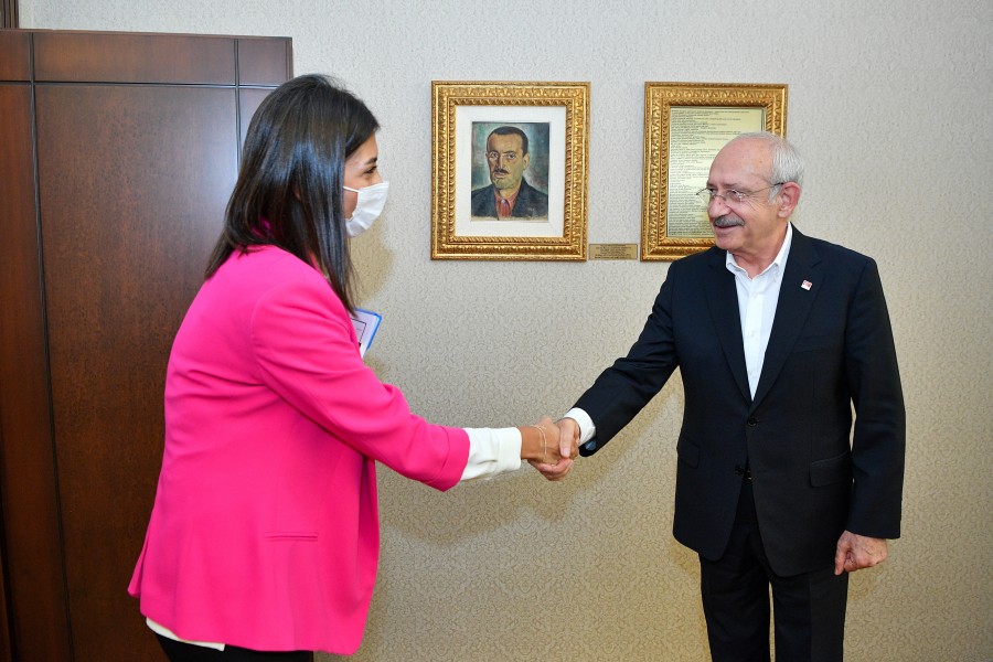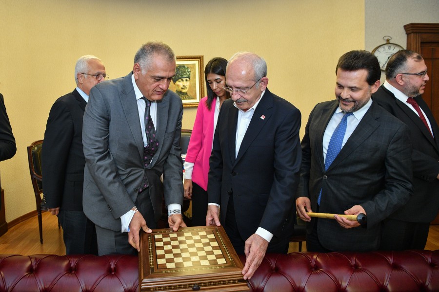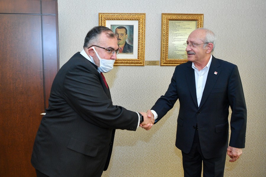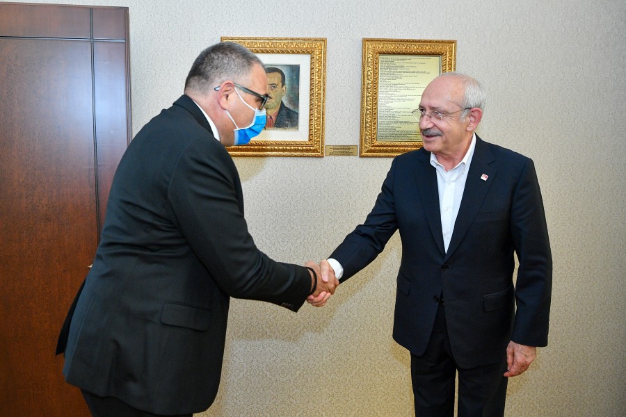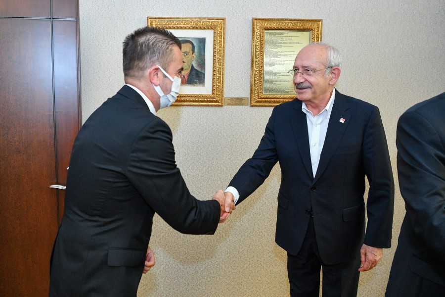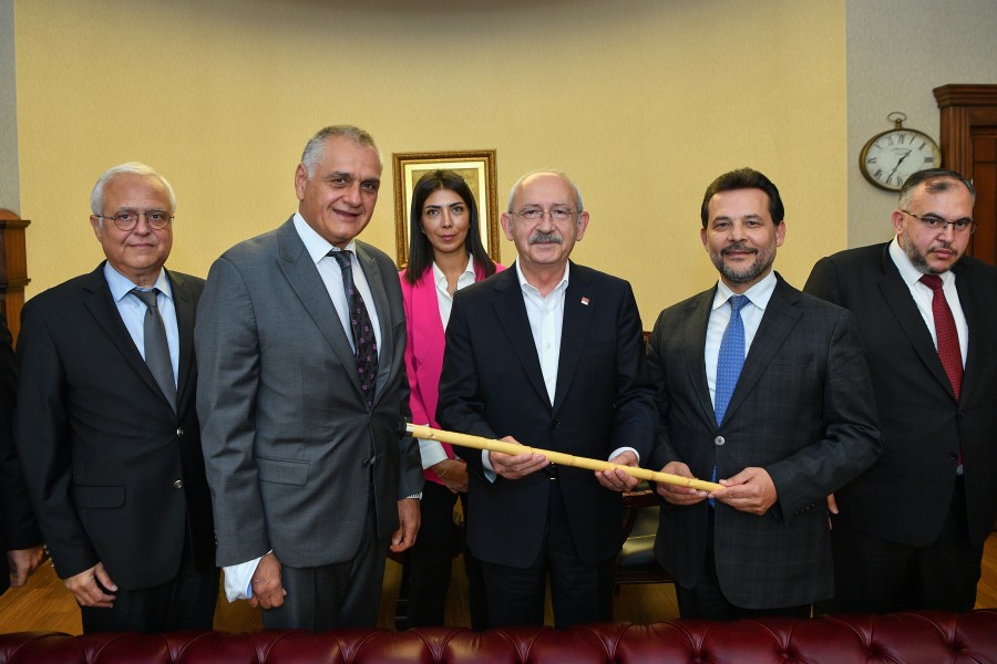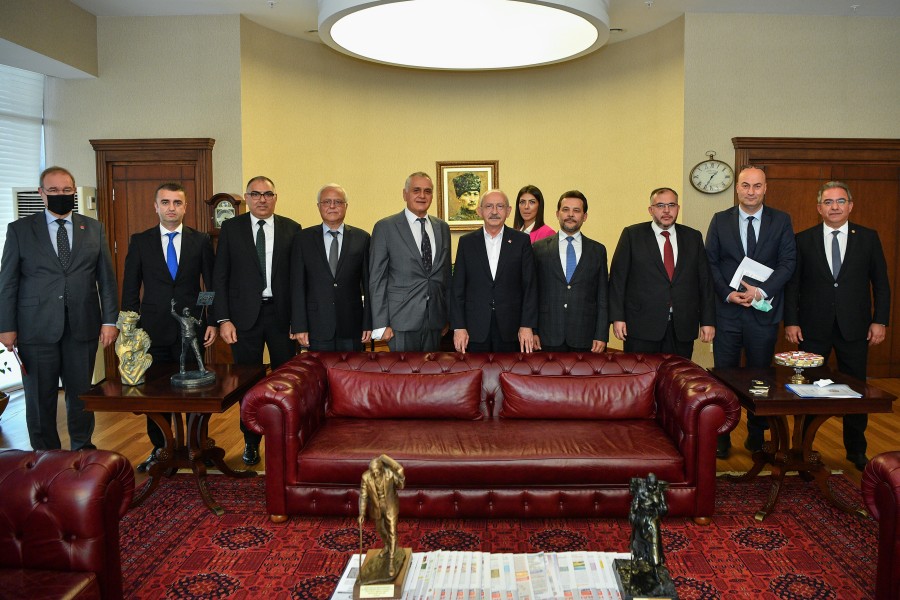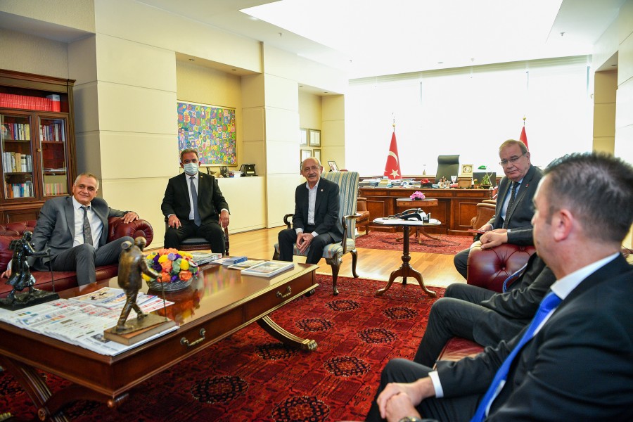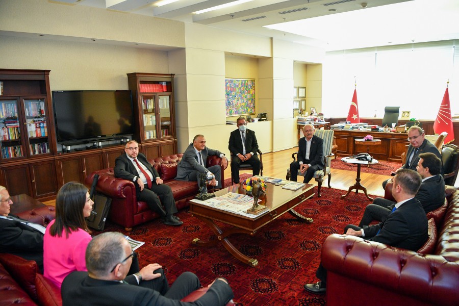 Odamız Meclis Başkanı Selahattin Eskiocak, Meclis Başkan Yardımcısı Necmettin Çalışkan, Yönetim Kurulu Başkan Yardımcısı Eşref Taner Özkaya ve Yönetim Kurulu Üyeleri Serdar Şahutoğlu ile Rufail İğne’den oluşan heyet Cumhuriyet Halk Partisi Genel Başkanı Sayın Kemal Kılıçdaroğlu‘nu makamında ziyaret etti. Genel Başkan Sayın Kemal Kılıçdaroğlu’na “İlimizdeki Sosyal, Ekonomik Gelişmeler ve İş Dünyasının Beklentileri” ile ilgili kapsamlı bir rapor sundu. Ziyarette Genel Başkan Sayın Kemal Kılıçdaroğlu, odamızın Coğrafi İşaretini aldığı ürünlerden biri olan Samandağ Ney-i hediye edildi. Ziyarette Konuşan Başkan Çinçin; Sayın Genel Başkanın yakın bir zamanda İlimizi ziyaret ederek Hatay İş İnsanları ile bir araya geldiğini bundan dolayı Antakya Ticaret ve Sanayi Odası olarak iadeyi ziyarette geldiklerini dile getirdi. Ziyaret sonunda Çinçin; heyetin talep ve önerilerini büyük bir dikkatle dinlemelerinden dolayı Sayın Genel Başkan Kemal Kılıçdaroğlu’na teşekkürlerini sundu.