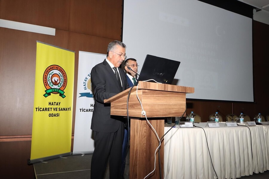 Hatay Ticaret ve Sanayi Odası ile Hatay Ticaret Borsası ev sahipliğinde; Hatay Vali Yardımcısı Mehmet Miraç Topaloğlu, Yönetim Kurulu Başkanımız Hikmet Çinçin, Meclis Başkanımız Selahattin Eskiocak,Ticaret Bakanlığı Halep Ticaret Ateşesi Sefa Akgül, Muavin Konsolos Ahmet Berat Osmanoğlu, Halep Ticaret Odası Başkanı Mehmet Said Şeyh Alkar, Halep Sanayi Odası Başkanı İmad Taha Alkase, İdlib Ticaret Odası Başkan Yardımcısı Muhamed Albadawi, Lazkiye Ticaret Odası Başkanı Anas Joud, Hama Ticaret Odası Temsilcisi, Hatay Ticaret Borsası Başkan Vekili Mehmet Cemal Bulanık, ilimizdeki oda ve borsa başkanları, meclis üyeleri ve sivil toplum kuruluşu temsilcilerinin katılımıyla “İş Birliği ve Ticaretin Artırılması” temalı toplantı gerçekleştirildi.