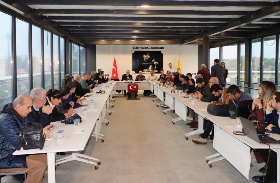 Odamız Yönetim Kurulu Başkanı Hikmet Çinçin Başkanlığında; ilimizde faaliyet gösteren künefe firmalarının temsilcileri, Meclis Üyemiz Süleyman Kızılkaya, 8. Komite Üyemiz Dilgan Taş Kertuş, Antakya Gastronomi Derneği Başkanı Metin Tansal, Başkan Yardımcısı Süheyl Budak, Genel Sekreter Yardımcımız Halit İmrek, Araştırmacı Ünal Kahraman ve basın mensuplarının katılımıyla bir toplantı gerçekleştirildi. Toplantıda, planlanan Antakya Künefe Etkinliği kapsamında yürütülecek çalışmalar değerlendirilerek görüş alışverişinde bulunuldu. Etkinliğe ilişkin hazırlıkların ilgili paydaşlarla koordinasyon içinde sürdürüleceği ifade edildi.