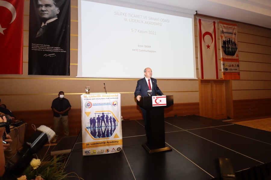KKTC Cumhurbaşkanı Ersin Tatar da Liderlik Akademisi’nin KKTC’de yapılmasından mutluluk ve onur duyduklarını ifade ederek, “Biz her zaman kendimizi Türkiye’nin kopmaz bir parçası olarak görüyoruz. Son zamanlarda temaslarımız arttı. Bu KKTC için çok önemli. Biz Avrupa Birliği içinde yalnızlığa itiliyoruz. Akıllı olmamız gerekiyor. Biz Rum tarafına saygıyı gösteriyoruz. Bizim de egemenlik hakkımız v ar. Onların da buna saygı göstermesi lazım. KKTC olarak ticaretimizi artırmak zorundayız. Her zaman söylüyorum. Kuzey Kıbrıs Türk Cumhuriyeti cennetten kopma bir yerdir. Asıl gelişme noktamız turizm olmalıdır” diye konuştu.