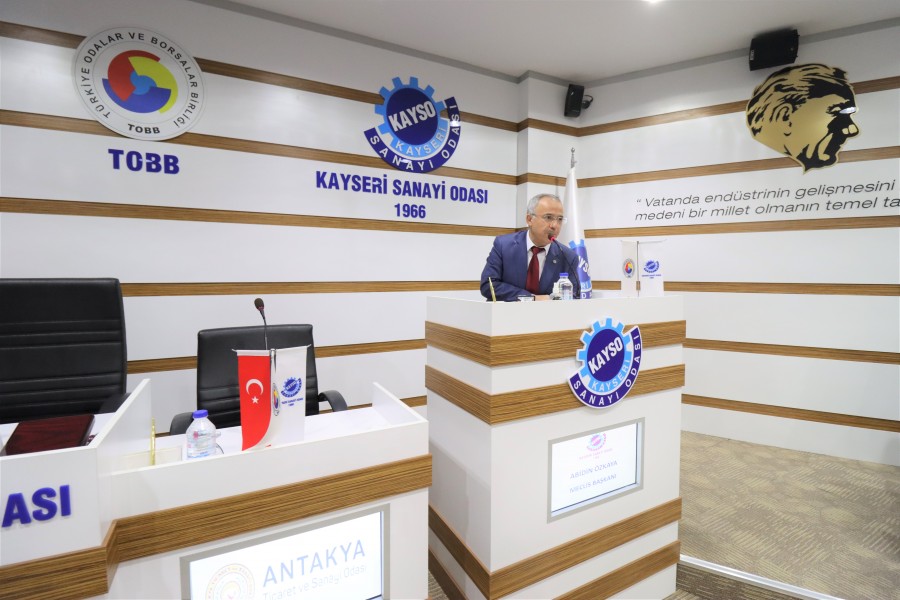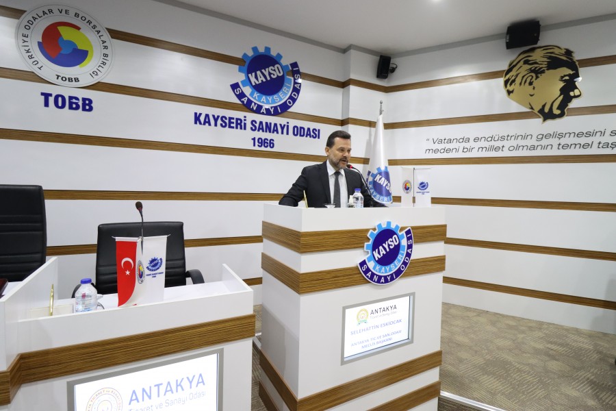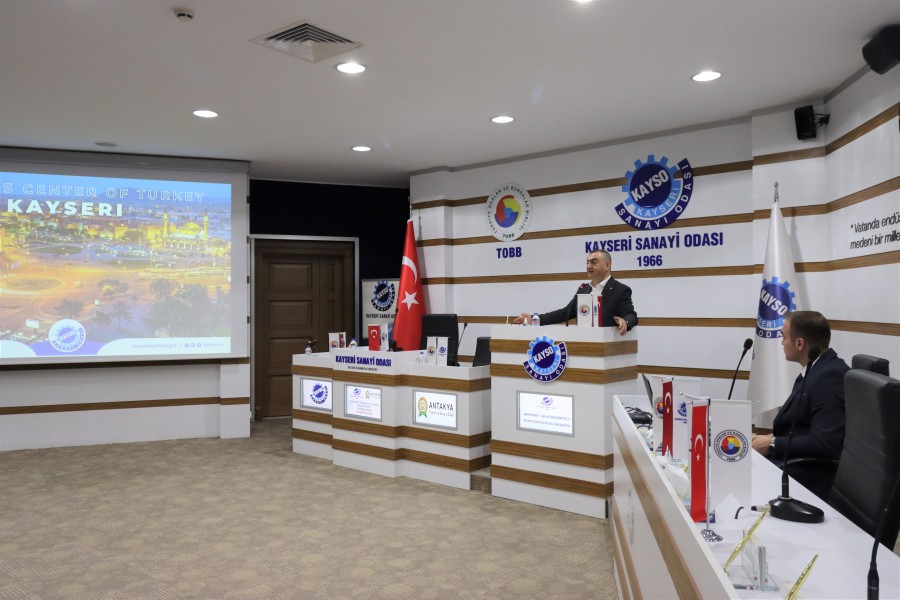 Ziyarette ilk olarak konuşan Kayseri Sanayi Odası Yönetim Kurulu Başkanı Mehmet Büyüksimitçi Antakya Ticaret ve Sanayi Odası heyetini ağırlamaktan duyduğu memnuniyeti dile getirdi. Türkiye’nin daha çok üretmeye, daha çok ihracat yapmaya ihtiyacı olduğunu ifade etti. Başkan Büyüksimitci, “Bunun içinde sanayinin eksiklerini tam manası ile biliyor olmamız lazım. Bu anlamda Odamız bünyesinde Yeşil Dönüşüm Ofisi, Verimlilik Ofisi ve ihracata yeni başlamak isteyenler için İhracat Destek Ofisimiz var. 2020 yılında kurduğumuz ve Oda olarak bizimde iştiraki olduğumuz Kayseri Model Fabrikamız var. Türkiye’de toplam 8 tane model fabrika biride Kayseri’de. Bu güne kadar yaklaşık 60 firmamız model fabrikadan eğitim aldı ve inanılmaz memnuniyet var. Şu anda çevre iller dahil çok ciddi talepler alıyoruz. Dolayısı ile hem ürün çeşitliliği, hem pazar çeşitliliği hem de verimlilik anlamında sanayide gidecek çok yolumuz olduğunu düşünüyorum” dedi.