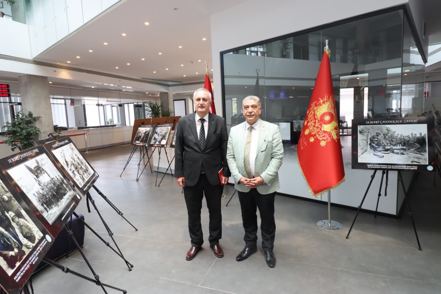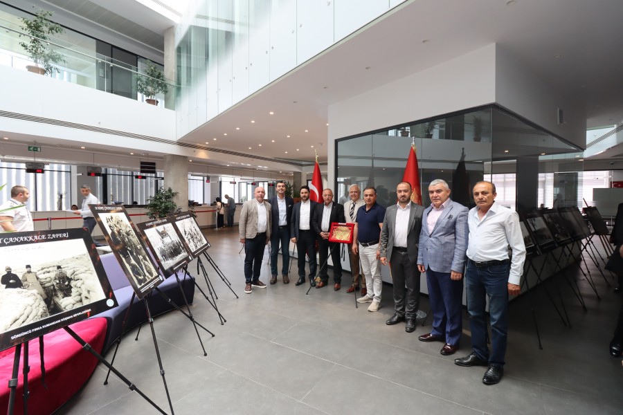Başkan Ömer Gülsoy ile Meclis Başkanı Cengiz Hakan Arslan, Heyetimize hizmet binasını ve fuaye alanında bulunan Çanakkale Ruhu Fotoğraf sergisini gezdirdi. Ziyaret toplu fotoğraf çekimiyle son buldu.